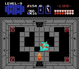 Наконец Линк, преодолев всю пакость на своем пути и выучив пару новых слов с моих уст - добирается до Ганона. Ганон использует свой Трифорс, чтобы стать невидимым. "Не самая честная схватка, чувак!" Приходится махать мечом по воздуху надеясь случайно попасть по этому гигантскому хряку. Когда засранец получит достаточно ударов он вдруг леденеет, а это знак, что пора пустить в него серебрянной стрелой. После этой череды действий тело Ганона взрывается на кровавые куски (буквально; самая жестокая сцена смерти на NES), а Линк идет в соседнюю комнату, где его ждет Зельда.