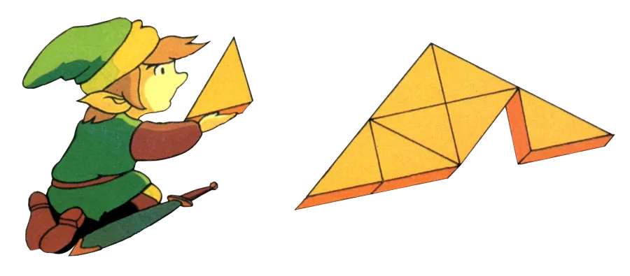 Никакого тебе обучения или подсказок куда двигать дальше - просто выкидывают в игру. Больше того, у Линка даже еще нет меча, которым можно защищаться. Вся полезная информация, как водится, скрыта в мануале. Внимательно его полистав, можно узнать, что меч можно найти в пещере напротив, а Линку теперь надо посетить восемь подземелий и забрать оттуда восемь кусков Трифорса, потом склеить их, потом найти Ганона и навалять ему. Ну и заодно Зельду спасти.