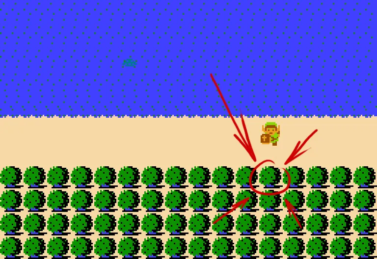 После того как компас и карта в кармане - Линку следует найти специальную вещь (ту самую без которой зачастую невозможно дальнейшее прохождение). На-а-апример в одном подземелье можно надыбать лестницу. Думаете Линк с ее помощью взбирается на горы или уступы? Нет. Линк ее перекидывает через реку, чтобы перебраться на другой берег. Такой вот этот он... выдумщик.