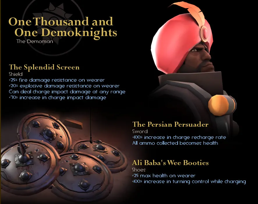 Подрывник получит шляпу Тысяча и один подрывник, Превосходное прикрытие (+25% к защите от огня, +20% к защите от взрывов, +70% к урону самим щитом, бьет щитом с разбега любой дистанции).