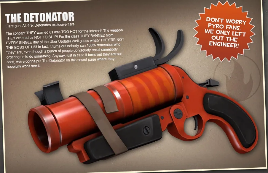 Да да, новое оружие на пиро, позволяющее альтернативной атакой взрывать заряд!
