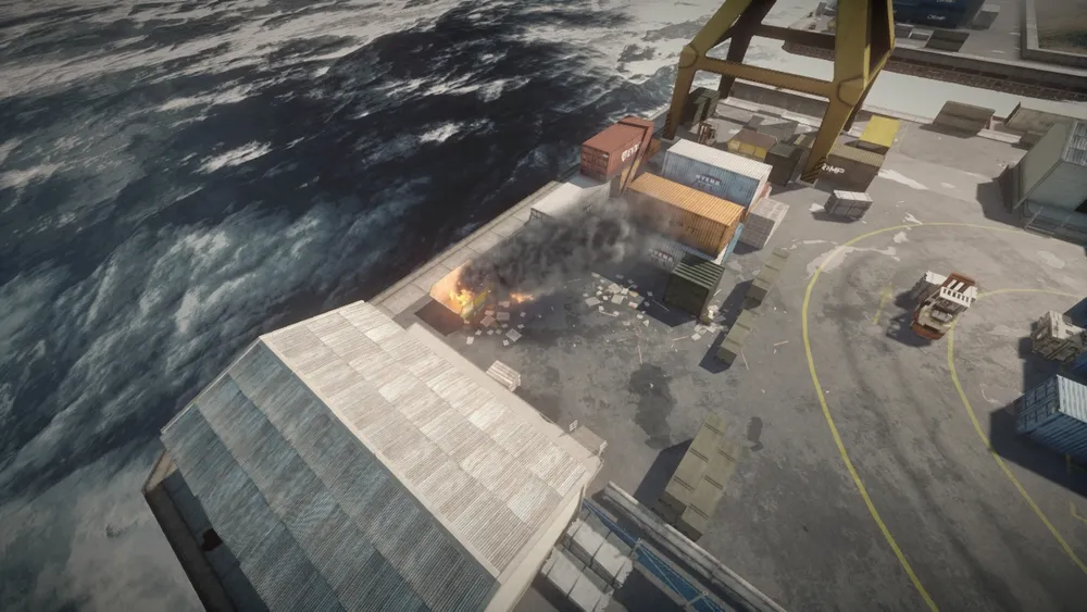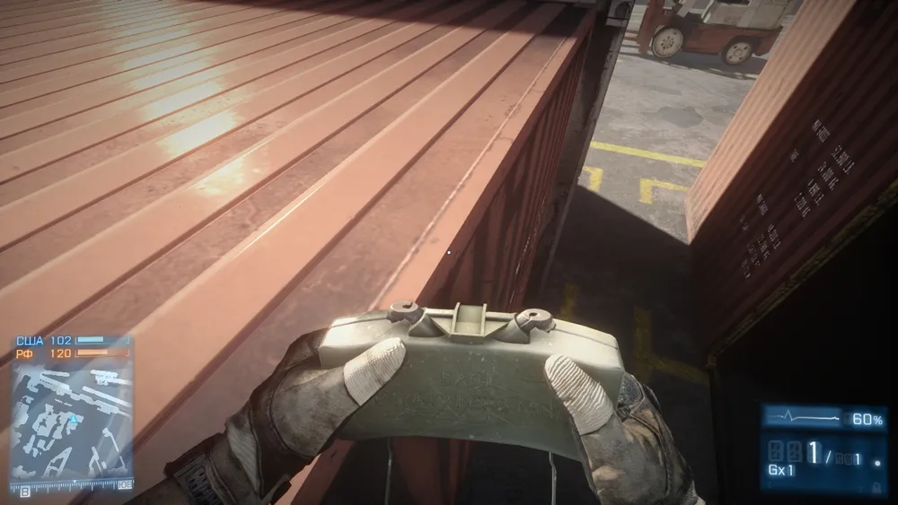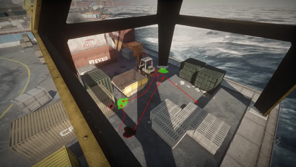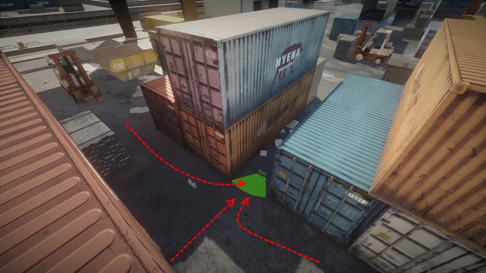 Так как карта представляет из себя небольшой кусок порта, с множеством контейнеров и всевозможных путей, по которым продвигаются игроки, то мест для установки мин Claymore - просто несчитанное количество. На этой карте нет ни одного места, где бы не пробежал обычный игрок, пытающийся скрыться от обрушивающегося на него града из пуль.