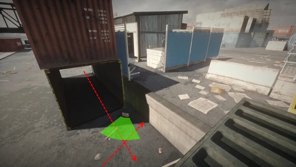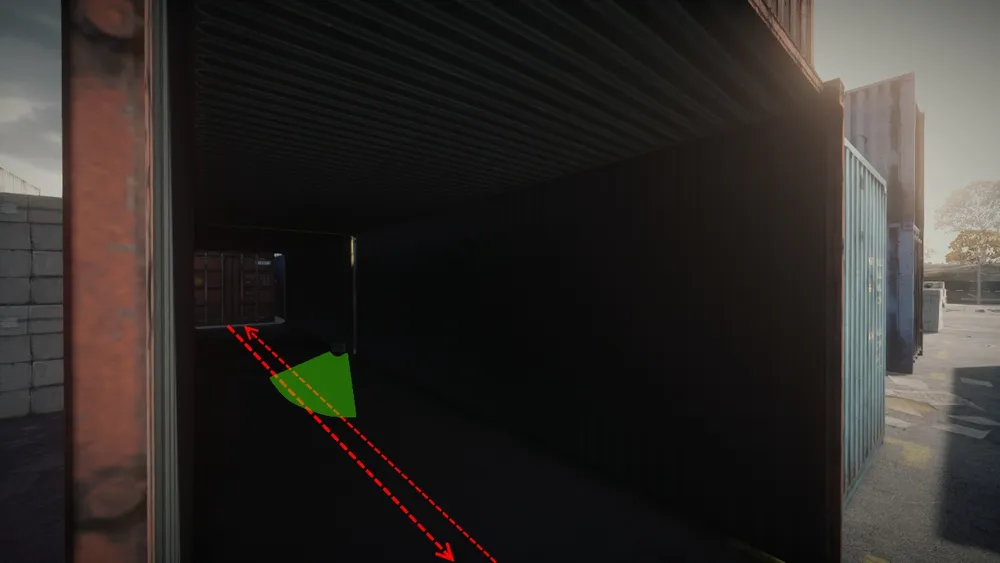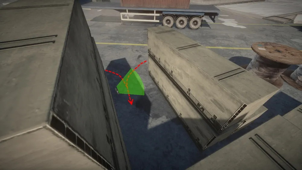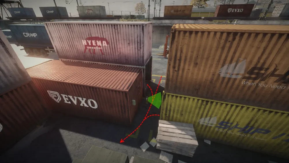 Чтобы умудриться ее так поставить, нужно залезть на контейнер, лечь параллельно к краю контейнера (как-бы свисая с него) и направить прицел чуть в сторону самого контейнера.