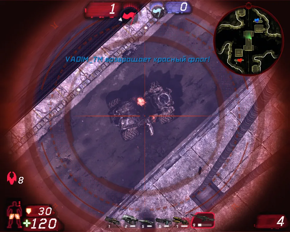 Я удираю со всех ног — ракетница в руке, флаг на плече. Над головой свистят пули, под ногами рвутся гранаты, даже сама реальность сжимается, и кажется, будто весь сервер охотится на одного меня. Красный доспех, отливающий, как ни странно, ярко-синим, — отличная мишень. Выстрел, щелчок где-то вдали и звук падения гильзы; еще выстрел — я едва разминулся со снайперской пулей. Уже двое стрелков устроили охоту, еще шаг — и... Красная «манта» с ревом, на чудовищной скорости рушится чуть ли не мне на голову. Водитель что-то невнятно кричит о тонкой броне, снайперах и заторможенных флагоносцах. Секунда, и мы несемся к базе: я, летающая доска, «манта» и синий флаг. Прорыв оказался победным...