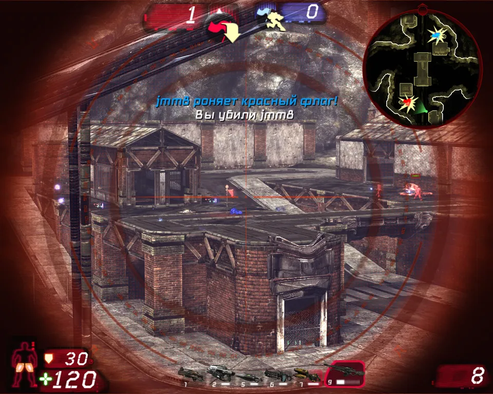 Пока лез к снайперской позиции, услышал сообщение о краже флага. Повернулся, прицелился, пресек.