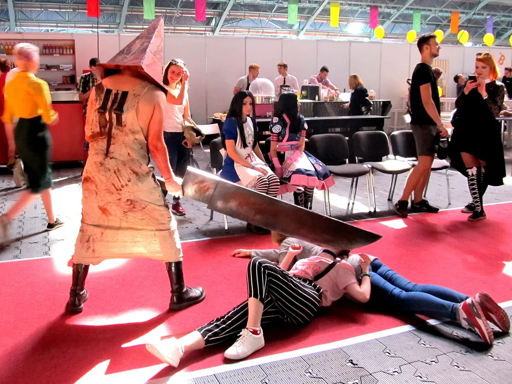 Косплей! Он был великолепен и его было много, но, опять же, мне не с чем сравнивать. Я увидел в живую косплей на своего любимого Пирамидоголового, причем парень даже копировал движения монстра. Персонажи на любой вкус, там была даже девушка-джокер! Многих героев я не узнал, потому что не со всеми популярными вселенными хорошо знаком. Например, с героями Overwatch я знаком отдаленно, а у этой игры, помимо косплееров, был целый стенд. То же самое со вселенной Borderlands, а уж у них стенд был одним из лучших! А еще было много мужиков в камуфляже и со стволами, копирующих то ли героев из Call of Duty то ли героев из Warface — непонятно. В общем это были просто парни в камуфляже со стволами.