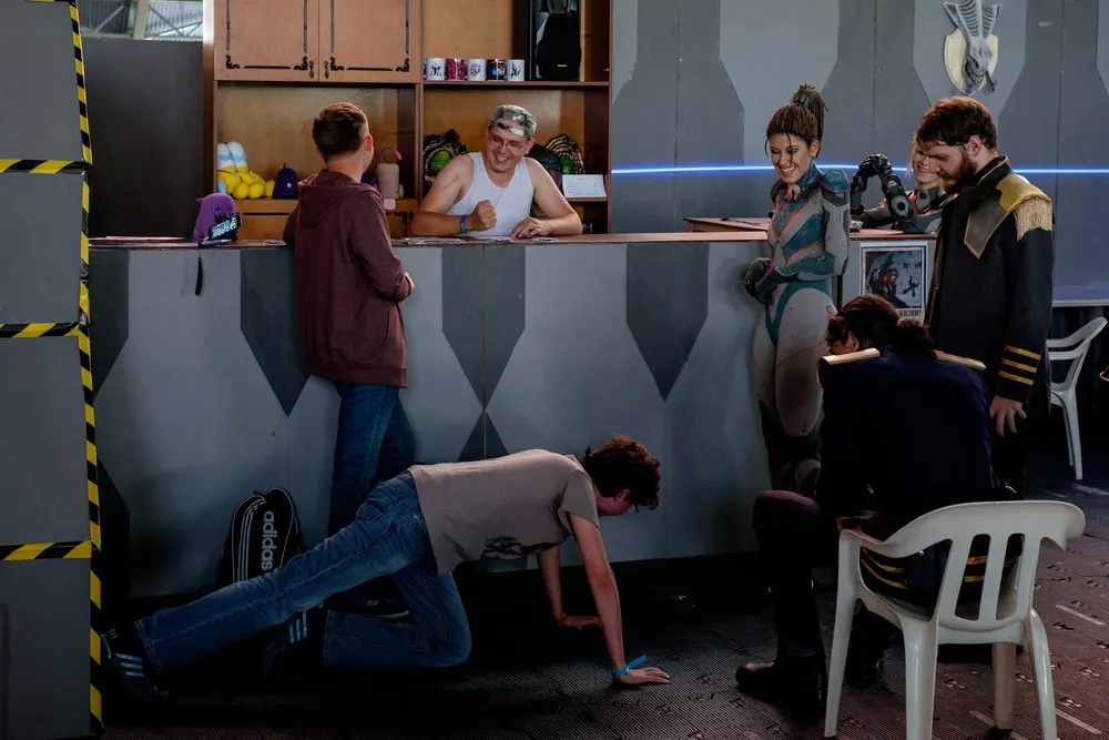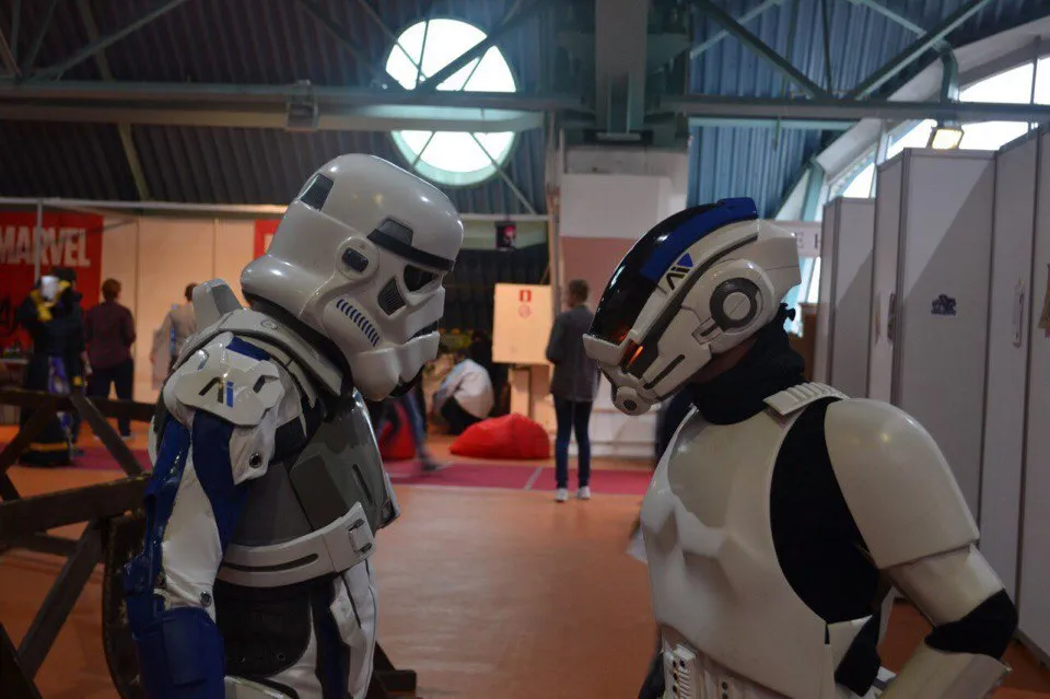 Как только зашел под крышу футбольного манежа (где фестиваль проходил), сразу же поразился количеству стендов-участников. Да, это был «Вау!» эффект. Представителей было много: Marvel, Borderlands, Blizzard, Undertail, Star Wars, BattleStar Galactica, Harry Potter и многие другие. Всего было двадцать пять стендов фантастических вселенных, и каждый из них что-то предлагал, что-то рекламировал, что-то продавал. Здесь можно было ознакомиться со шлемом виртуальной реальности, огромным количеством настольных игр, и даже сыграть в настольную ролевую игру. Желающие могли бесплатно (отстояв очередь) поиграть вMortal Combat X, Injustice 2, Street Fighter V на приставках Playstation или Xbox. И даже Nintendo Switch можно было опробовать. А для старперов любителей классики, была отдельная комнатка с приставками Dendy и SEGA и картриджами со старыми игрушками, среди которых —Ultimate Mortal Kombat 3. Как ни странно, дети лет до десяти больше всего зависали именно на старых приставках.
