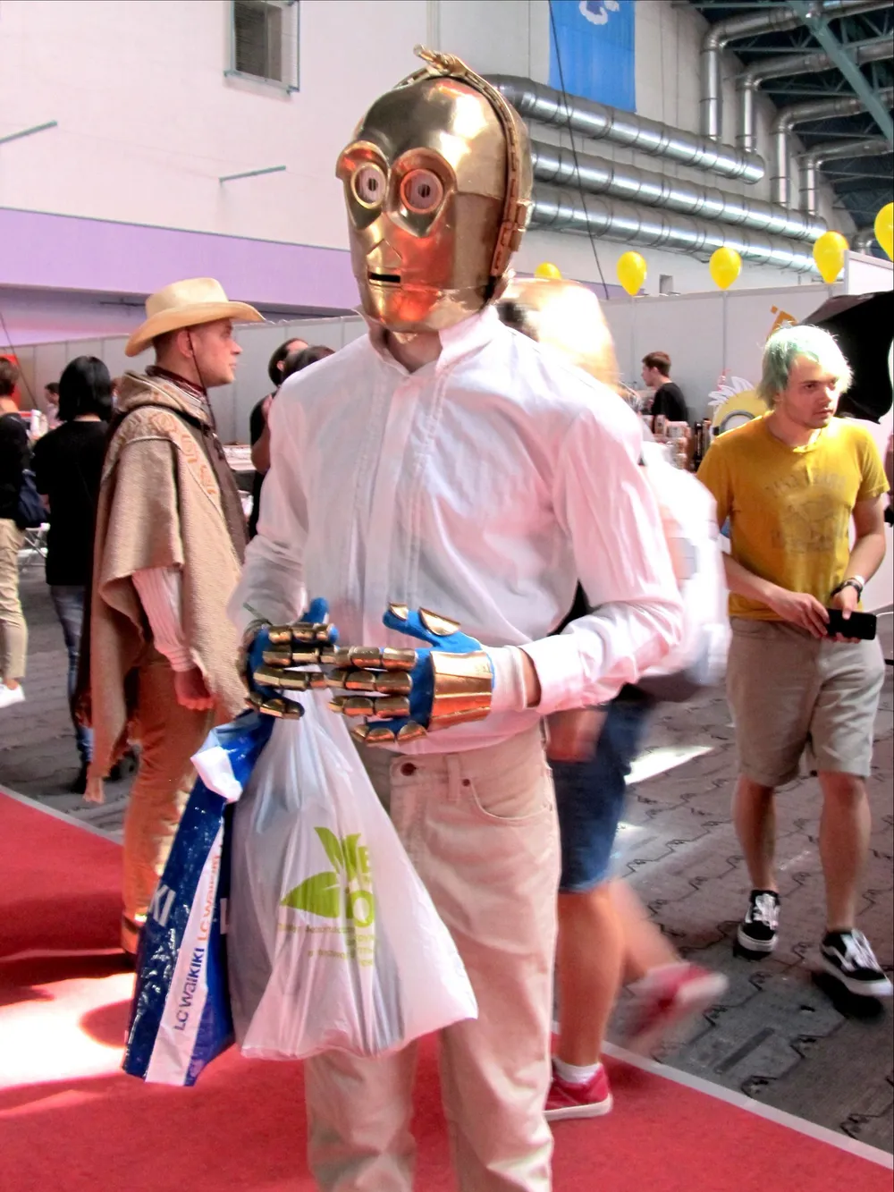 Особняком стояли конференц-залы. Каждый желающий мог зайти в любой конференц-зал и послушать лекцию или посмотреть мастер-класс на интересующую тему. Я успел побывать на мастер-классе Виктора Кушнерова по крафту «Покраска и фактуровка», это полезно для тех, кто хочет заняться кослпеем и создать свой костюм; хотя и для общего познания стоило послушать, благо Виктор оказался мастером своего дела и блестяще показал как правильно красить разнообразные материалы и придавать им нужный вид. Вторая конференция, которую я посетил, была лекция на тему «История командного комикса как явления», где Алексей Замский рассказал про становление командного комикса Marvel и DC, главные отличия комиксов двух вселенных и еще много-много других нюансов, касательно комиксов, и сопровождал все иллюстрациями обложек оригинальных выпусков. Надо сказать, лекция мне очень понравилась и слушал я на одном дыхании, потому как сам являюсь любителем вселенной Marvel и DC, с другой стороны, Алексей проводил лекцию так, что было видно — он настоящий фанат своего дела, он любит свою работу и заряжает своей энергией всех слушателей. Собственно, только две конференции я успел посетить за два дня.
