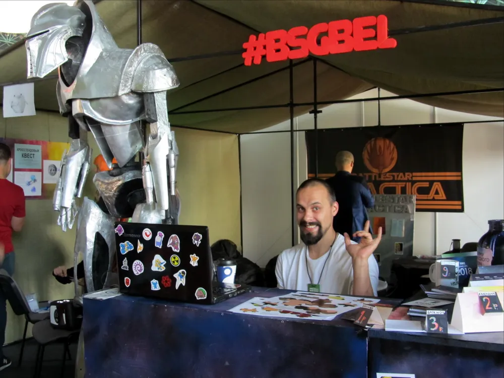 Как выяснилось, на фестивале проходил большой квест с розыгрышем призов и каждый мог поучаствовать в нем. Квест заключался в следующем: тебе выдавали бланк, на котором было изображено двадцать пять символов стендов-участников и для каждого символа нужно было получить наклейку у соответствующего стенда. Но наклейку тебе не давали просто так, сперва нужно было выполнить определенное задание. Например: на стенде Футурамы нужно было ответить на несколько вопросов по вселенной (которые я, к стыду своему, почти завалил), на стенде Marvel с десяти попыток нужно было отгадать персонажа, которого загадывал представитель стенда (в моем случае это была Мэри-Джейн, но тут я просто угадал), у представителей «Ведьмака» можно было сыграть в покер на игральных костях, армрестлинг, или ответить на несколько вопросов по вселенной (ну откуда я знаю настоящее имя Лютика, если я не читал Ведьмака?), но вот на стенде Battlestar Galactica я сразу ответил на все вопросы, не посмотрев ни одной серии франшизы (правда перед опросом мне дали специальные материалы для ознакомления).