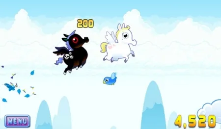 Вы парите (ах!) с облачка на облачко и сбрасываете вниз хороших белых лошадей. Ну а внизу - адская мясорубка, разрывающая хороших белых лошадей на... А дальше включайте Slayer - и вперед!