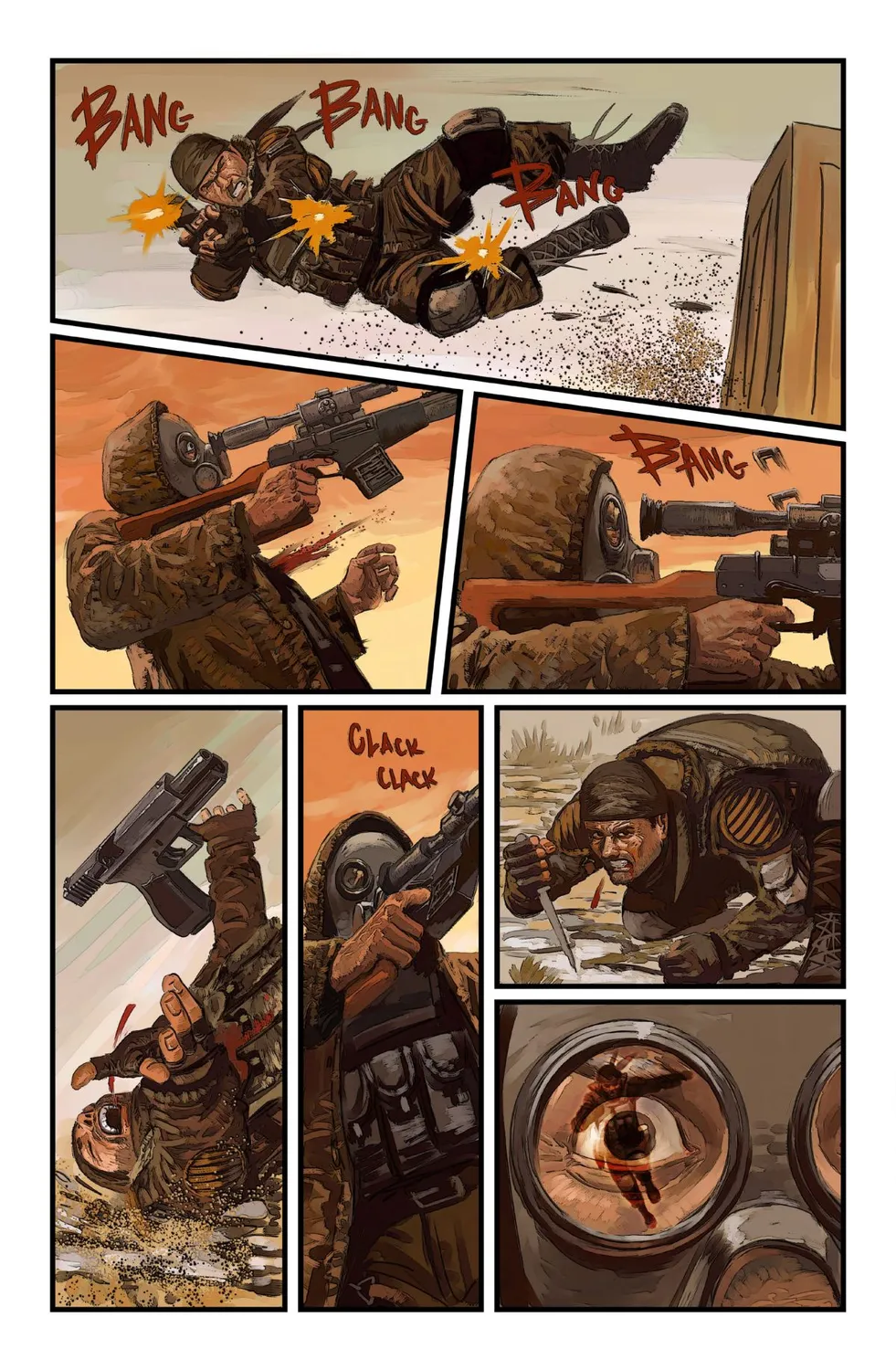 В конце комикса, отражается сулует в шлеме монстра. Это ты зритель. Когда я рисовал этот комикс, мне казалось это крутым эффектом. Я был глуп и комикс не очень.