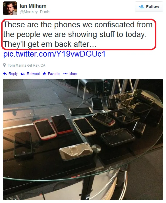 (вероятнее всего Battlefield S.W.A.T), о чем сообщил Ян Милхем из EA. В Твиттере он оставил фото с телефонами, которые забрали у журналистов на время демонстрации, чтобы избежать утечек.Ждем подробностей и официального релиза от Electronic Arts.