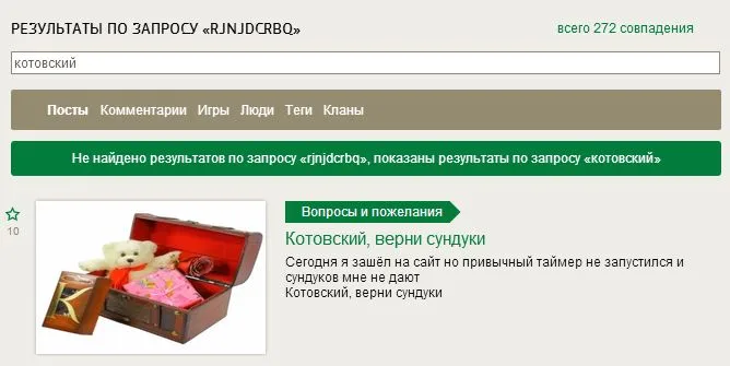 Помимо этого поиск научился искать по запросам с неверной раскладкой.