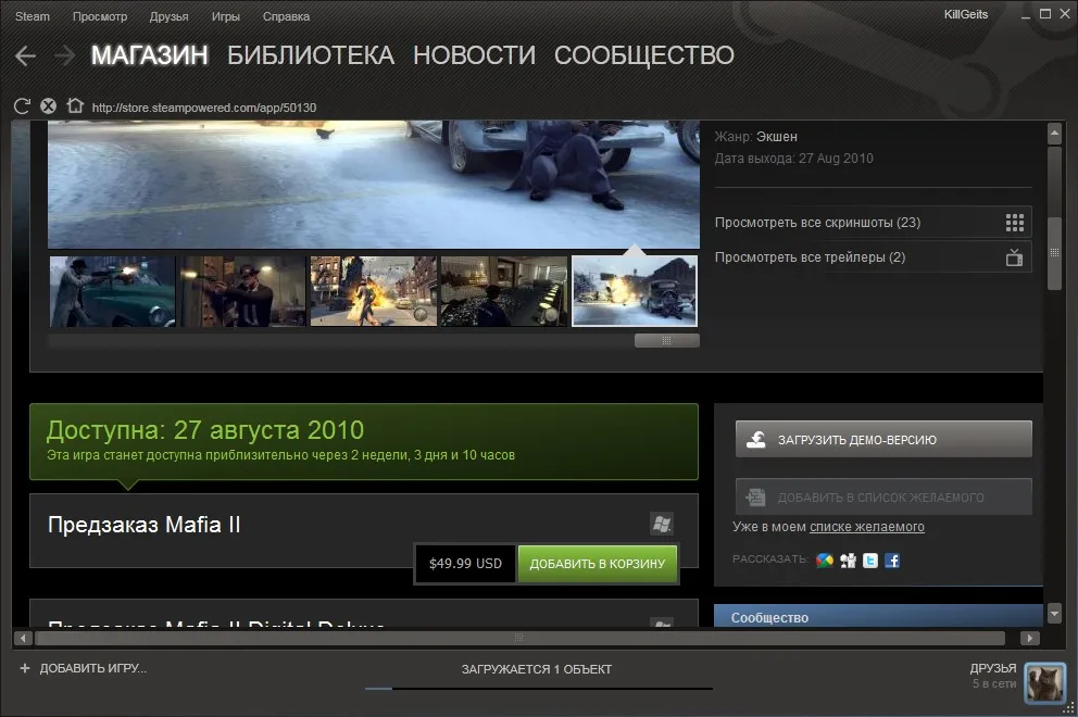 Демо-версия Мафии 2 уже доступна для скачивания через Steam.