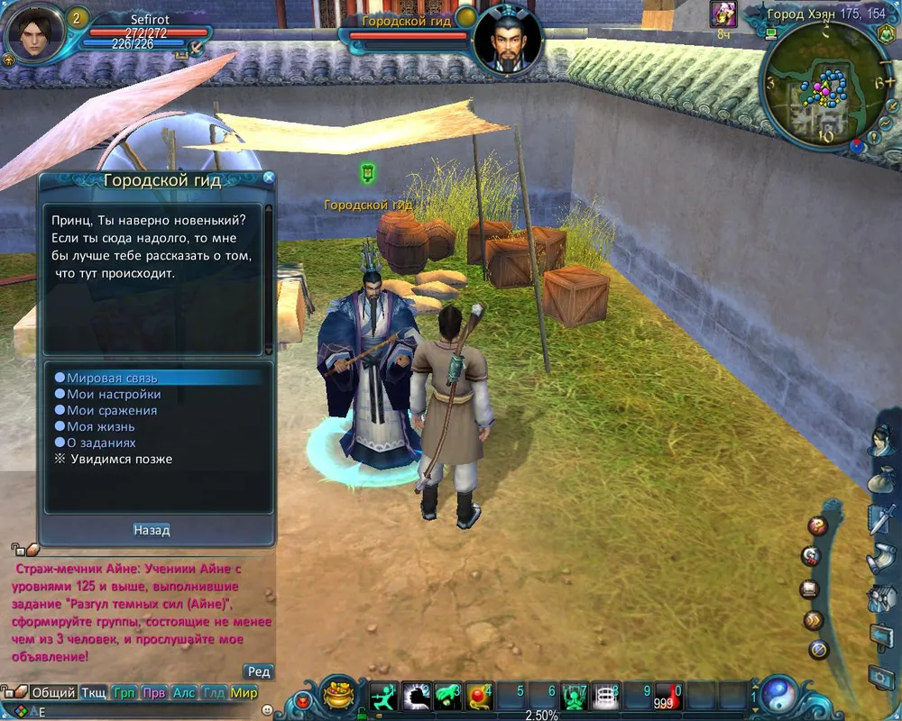 Данный товарищ может рассказать много интересного об интерфейсе игры, управлении, боевой системе, заданиях и так далее. В целом полезно, рекомендуется к ознакомлению. Разобравшись с управлением, которое не претерпело особых изменений со времен Perfect World – движок-то один и тот же, я решил покопаться в инвентаре. Как и в большинстве игр, инвентарь открывается кнопкой «B», окно персонажа кнопкой «C» - ничего неожиданного. В зеленой коробке «Набор новичка, уровень один» после ее открытия обнаружилось несколько полезных вещей, а сама коробка мутировала в «Набор новичка, уровень пять». Оставив коробку в покое до лучших времен, я экипировался выданными шмотками и отправился исследовать город.