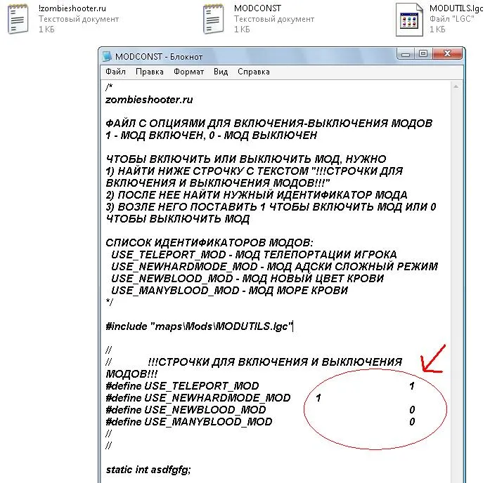 <каталог с игрой Zombie Shooter>/Maps/Mods/MODCONST.txt.