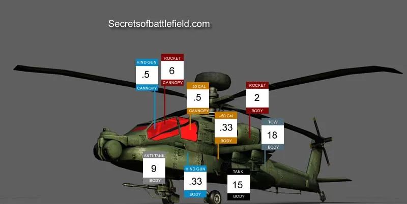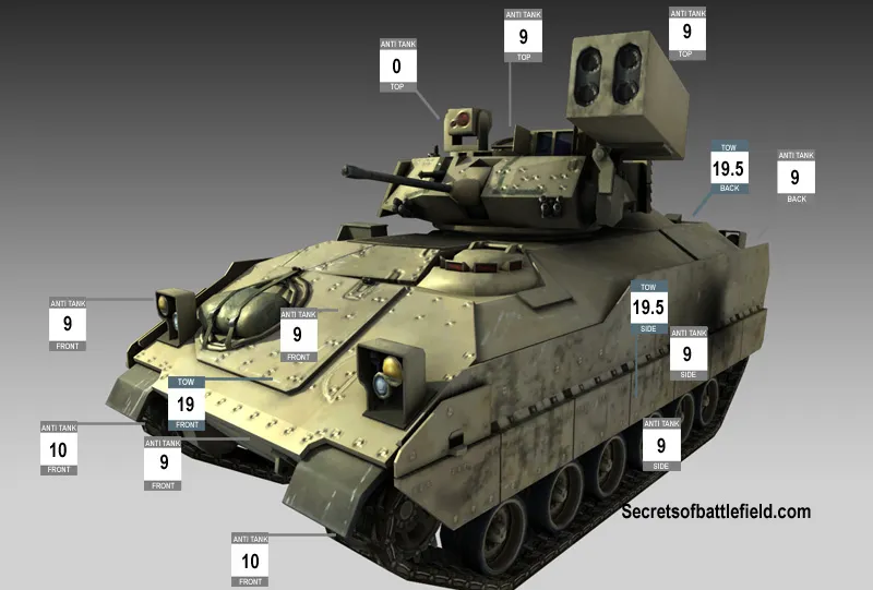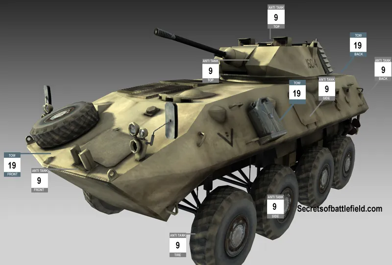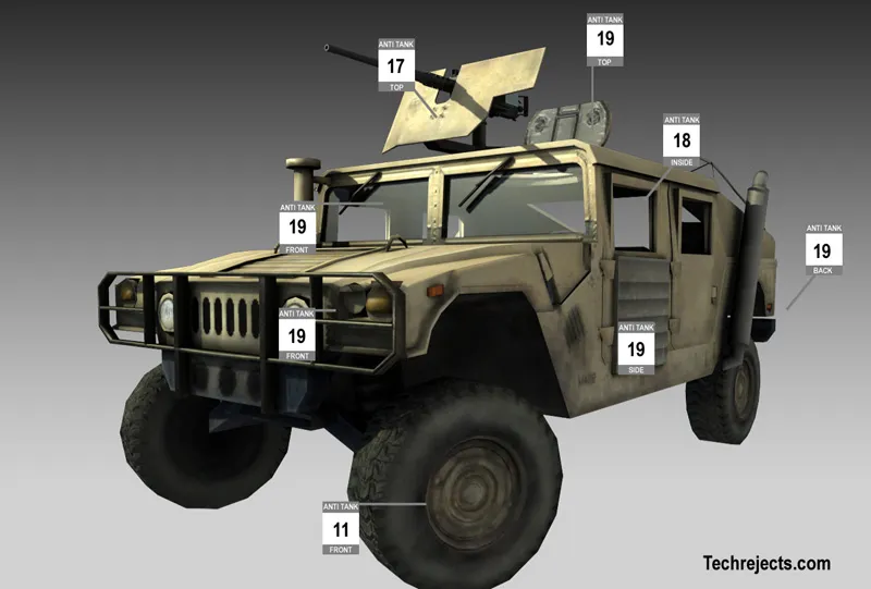 У каждого транспортного средства 20 жизней. Большую часть техники можно убить с одного точного выстрела.