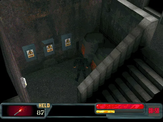 - уровень 4 - убить киборгов-охранников, собрать пять перфокарт, отключить заграждение, покинуть базу через тоннель на мотоцикле;