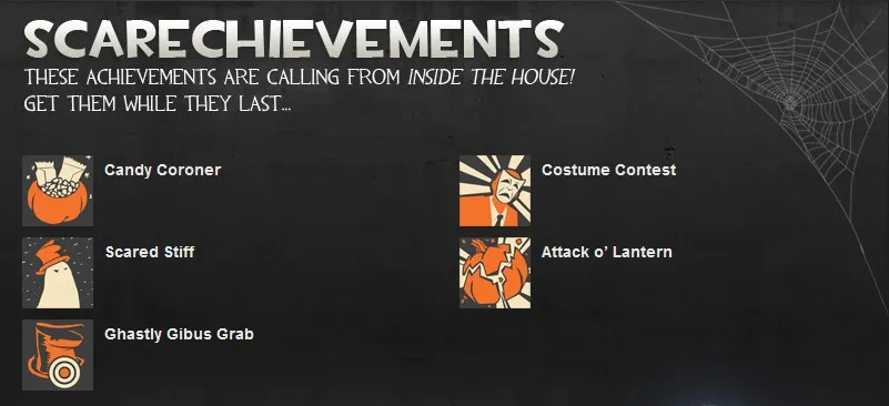 Встречайте, если у вас хватает смелости, первый специальный выпуск Team Fortress: Хэллоуин преследует нас! Пять новых достижений дадут вам возможность получить Раздражающие Хеллоуинские Шапки - потрепанные, жутковатые в своей безнравственности, враждебные и чудовищные настолько, что человеческий глаз не может этого воспринять и наверняка, в целях самосохранения, покажет их вам как бумажные пакеты с нарисованными на них рожицами. Тем не менее, эти рожицы тоже довольно страшные, так что, приготовьтесь к ужасам! [слышно хлопанье крыльями]
