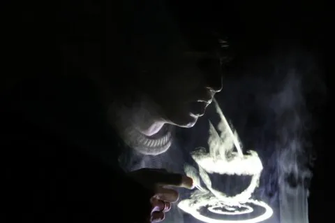 Демонстрация технологии управления безэкранным дисплеем multitouch