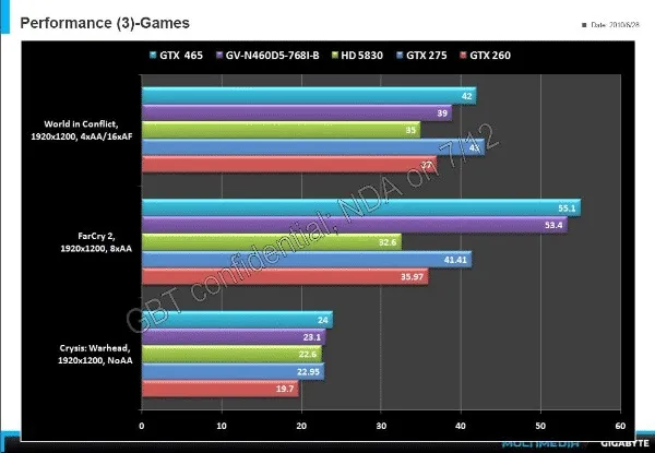 В cеть утекла информация о производительности GTX 460 768 Мб