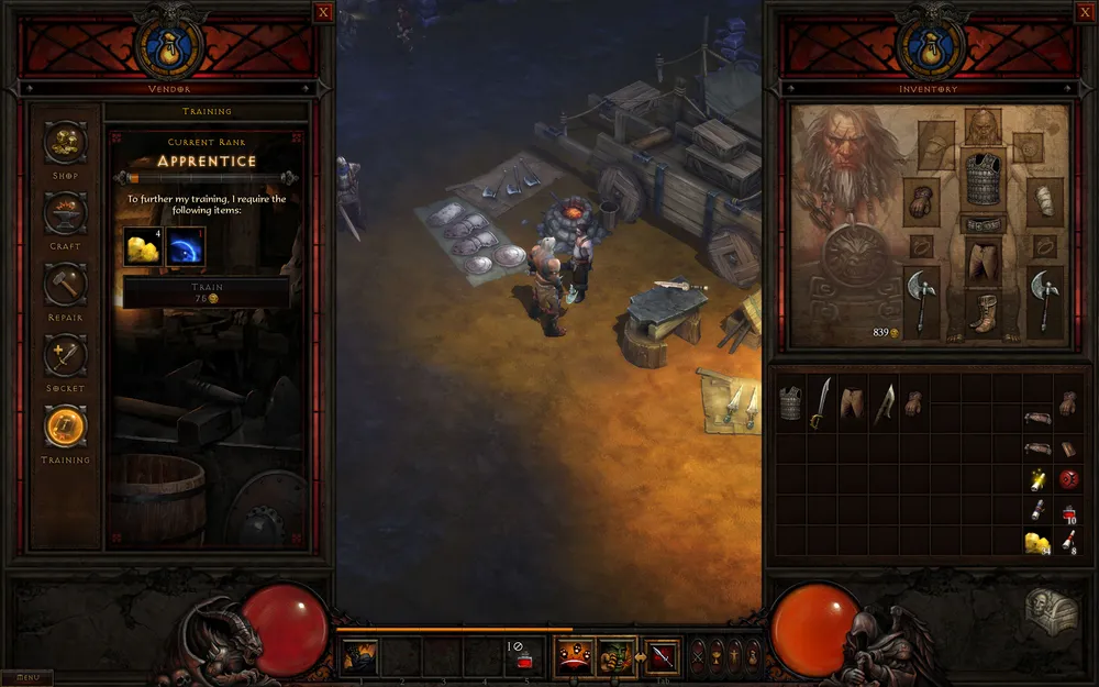 Как вы помните, в Diablo 2 уже были кузнецы, которые позволяли один раз за прохождение улучшить какую-то вещь (imbue) и просверлить дополнительную дырку для улучшения доспехов или оружия. В Diablo 3 разработчики пошли дальше, развивая эту систему и примешивая к ней различные особенности крафта World of Warcraft.