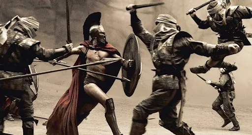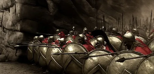 Эта теория основывается на фильме 300. Там спартанцы очень удачно оборонялись от врагов. Щиты были такого размера, что можно было организовать непроходимый строй или полностью закрыться от стрел.