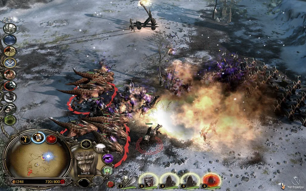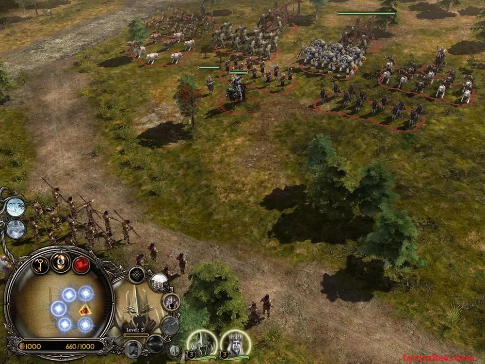 Стратегия в реальном времени, схлопотавшая в свое время море критики и океан одобрения. Как и во всякой RTS вам придется управлять экономикой и производством армии. Графически игра достаточно интересна, музыка на высоте, а Иэн МакКелен и Кристофер Ли, светлая ему память, приняли участие в озвучке проекта. Однако главным новаторским шагом по отношению к любителям Средиземья стала возможность играть не только за «свет». Кампания тьмы, называемая извращенной, ибо представляет собой альтернативное развитие событий, завоевала большую популярность. К выходу второй части разработчики достигли определенного уровня – кампания тьмы стала интересней основной игры. Но о второй части мы еще будем говорить. Понятное дело, что возможность играть за Мордор, тем более, в такой «расистской» вселенной особенно примечательна, но стоит также отметить и саму механику игры.