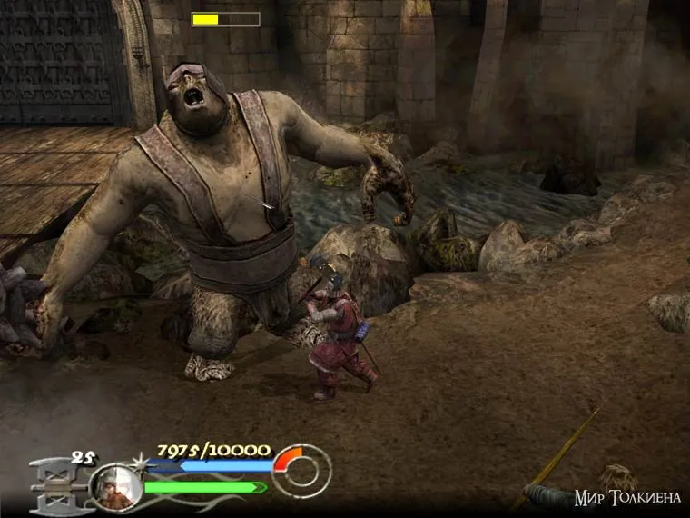 Первая поистине легендарная игра. Основана она на предыдущей игре, вышедшей, правда, лишь на приставках – «Две крепости». В EA не стали изобретать велосипед и портировали успешный проект с новым сценарием на ПК. Косяки чувствуются, например, с положением камеры, которую так и хочется подвинуть, но в ответ на любые движения мышкой ты не получаешь ничего. Но это, скорее, придирка. Игра крайне аккуратно следует за сюжетом фильма, но, благо, начинается с переломного момента Битвы за Хельмову Падь, а не с оригинальной «книжно-фильмовой» скуки. После объемных вставок из фильма играть вы начинаете Гендальфом, и тут же на вас обрушится шквал орков, которых вы непременно должны убить. С первой минуты геймплея начинается мясо – то, что так любят и не любят одновременно фанаты. Стелс-задания, прежде связанные с хоббитами, теперь отходят на второй план, ибо у Фродо и компании появляются клинки и ими можно крушить и убивать всех подряд – от призраков в ущелье до орков в чистом поле. Словом, убивать вам придется много и сложно, на определённых этапах, конечно, но все же. Поэтому играть советую дозированно, так как за три подряд часа непрерывного прохождения пальцы у вас подустанут. 1.5 – 2 часа в день самое то.