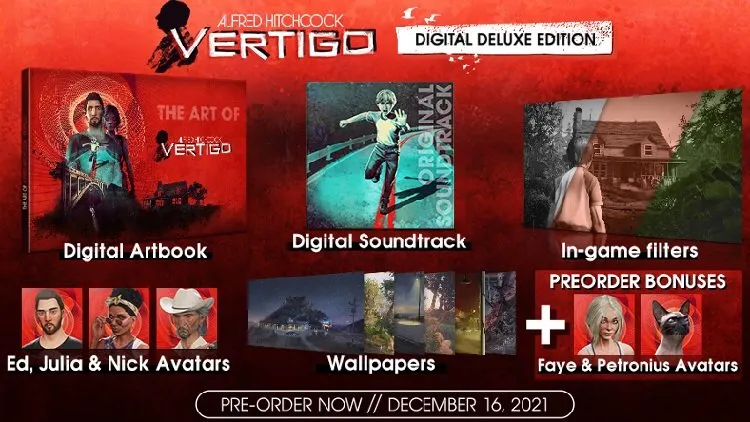 На Alfred Hitchcock’s Vertigo уже открыт предзаказ в GOG и Steam. Стоимость игры — 1499 рублей. Для ПК ожидается выпуск игры в конце 2021 года ( 16 декабря ). На Nintendo Switch, PlayStation 5, PlayStation 4, Xbox Series X|S, и Xbox One игра выйдет в 2022 году.