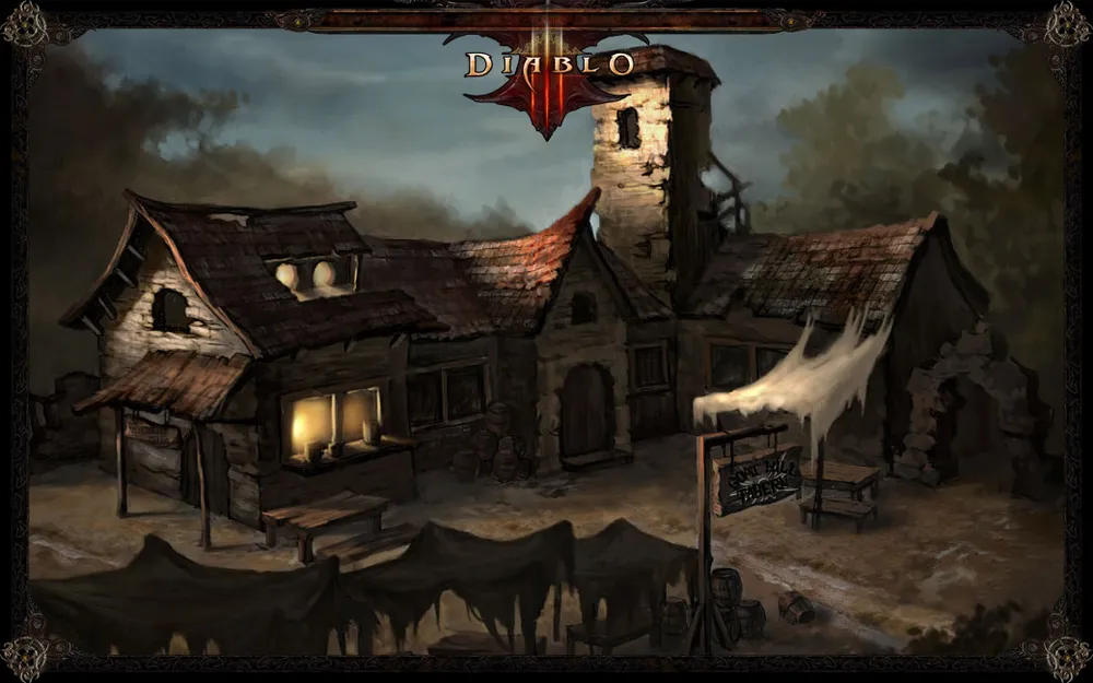 Это небольшая локация в городе или неподалеку от него (точно пока неизвестно). О ней почти нет информации, кроме, разве что, концепт-арта, который был опубликован еще во время анонса Diablo III в 2008-ом году. Вполне вероятно, что эта таверна придет на замену таверне Восходящего Солнца [Tavern of the Rising Sun], которой в первой части игры владел Огден [Ogden]. Таверна выглядит, как и прочие строения в городе. Судя по виду, в ней готовы к приему путников, однако при этом нельзя не заметить некоторую обшарпанность постройки. Ее явно строили на скорую руку, не заботясь о комфорте постояльцев и внешнем виде самой таверны.