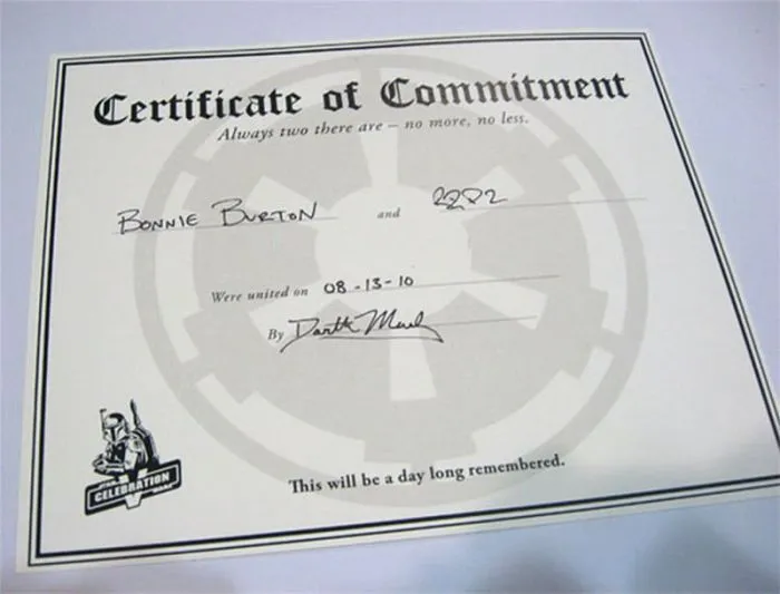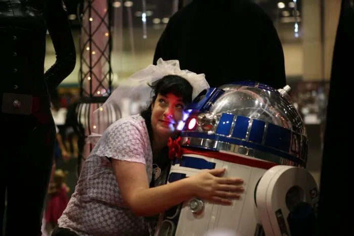 Американка Бонни Бертон, большая поклонница «Звездных войн», связала себя узами брака с куклой, изображающей робота R2-D2. Церемония состоялась на фестивале Star Wars Celebration. Сообщается, что молодых благословил человек в костюме Дарта Мола, а в качестве шафера выступил «Дарт Вейдер». Разумеется, никакой законной силы этот шутовской брак не имеет. Любопытна запись, которую новобрачная оставила в блоге, посвященном “Звездным войнам”.