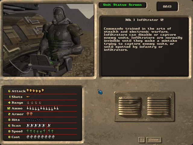 Система совершенствования своей армии работает вплоть до стопроцентной отметки для каждого параметра, что позволит даже слабого скаута превратить в неплохого бойца поддержки или стремительного штурма.