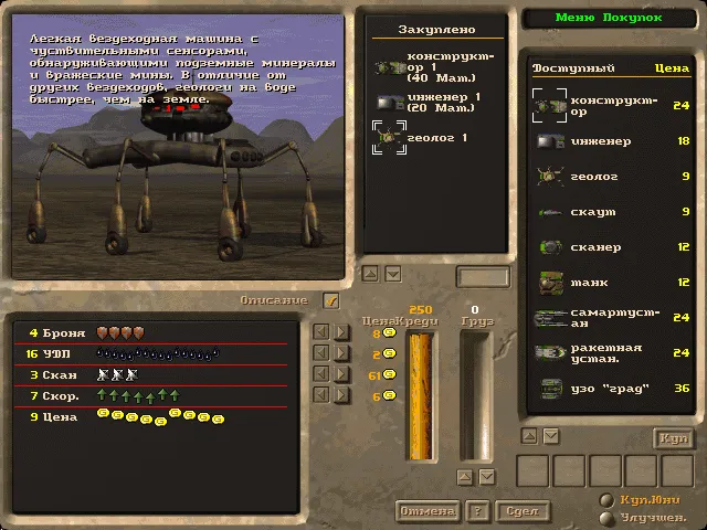 Игра предлагает своё решение проблемы динамики событий в стратегиях, когда игрокам сперва надо отстроить базу, наладить производство и когда ведь ещё воины появятся-то чтобы сражаться... Здесь же перед стартом некоторых режимов игры можно закупать начальную партию бойцов, на выданный капитал можно или скупить кучу танков, либо взять побольше инженеров. К тому же каждого из них можно усовершенствовать, что открывает большое просто для отыгрывания самых разных тактик и "дебютов".