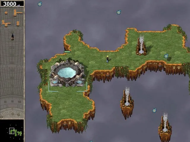 И вот, чтобы нимбианцы могли добираться до других объектов со своего острова - точнее до гейзеров сперва добираются Жрецы, взять пару кристаллов и поправить финансовое положение, а потом создаются големы, которые отныне и будут основными трудягами - они придумали строить мосты. Мосты здесь собираются из сегментов, но предлагать нам будут произвольно созданные наборы, придётся спешно импровизировать, так как если мост ни с чем не соединить, то он будет постепенно разрушаться. Но в итоге маршрут проложен, чтобы добираться до нужного вам места. И теперь перед игроком появляется новая соблазнительная и полезная задачка - замуровать противника, пресечь пути для его мостов - по здешним правилам чужие мосты непересекаемы.