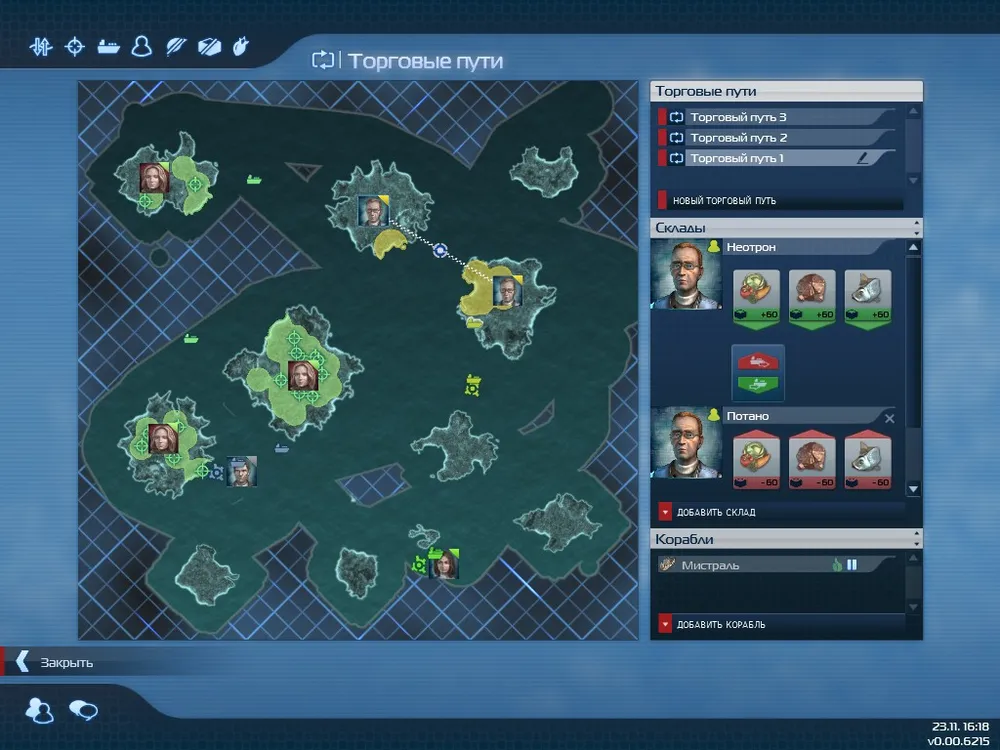 Воевать или торговать придется наверняка, особенно, если вы играете с живыми противниками. Если начальные ресурсы есть везде, то уже на втором уровне развития могут возникнуть проблемы. На каждом острове есть всего три вида продуктов, получить больше можно, но не сразу. А значит, приходится колонизировать соседние острова и настраивать торговые маршруты. Если свободных островов с нужными запасами нет, что ж, запасы можно купить… или завоевать остров, где они есть. Компьютерные противники, впрочем, воевать не рвутся, проще продавать им что-то ненужное и получать что-то полезное. Водить корабли с товарами самостоятельно можно, но не нужно. Настройка торговых маршрутов в игре вполне удобная, достаточно определить, где что загружать, где разгружать и на каких кораблях все это возить. Торговля, кстати, дело выгодное. Товары глубокой переработки стоят дорого, а получаете вы их практически бесплатно. Транспортировка товаров по голубому морю вообще бесплатна, точнее, вы в любом случае платите за содержание ваших кораблей.