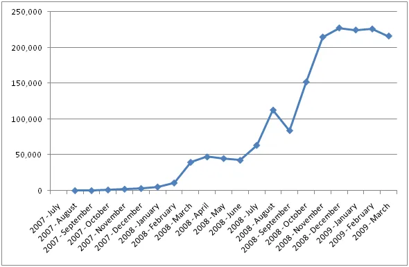 Команда разработчиков Windows 7 в своем блоге опубликовала информацию о проблеме распространения malware путем автоматического запуска (autorun) со сменных носителей. На рисунке представлена картина динамики заражений таким способом.