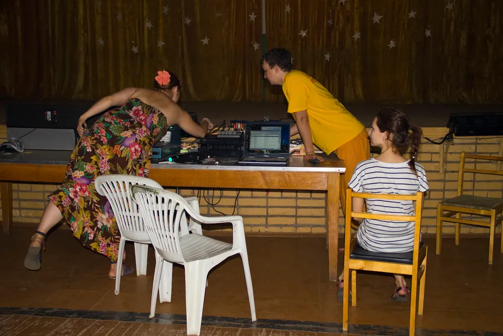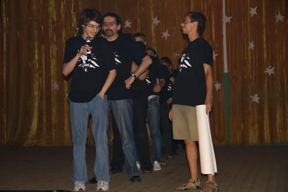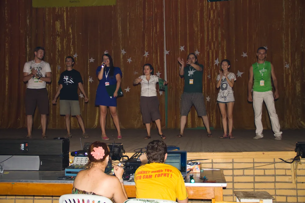 Вечерняя шоу-программа, представляли друг друга все :) На сцене клан-лидеры и Настя)