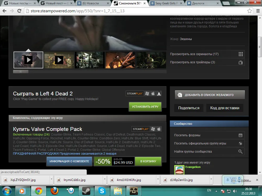 Компания Valve в честь новогодних праздников дарит всем пользователям Steam игру Left 4 Dead 2!!!