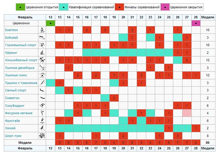 В 15 видах спорта, будет разыграно 86 комплектов медалей.