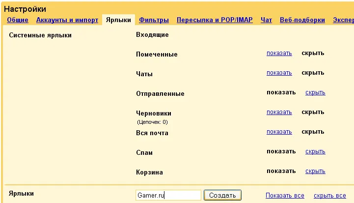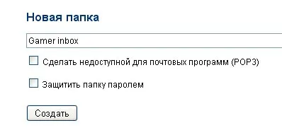 Ваша почта. Создание отдельной папки под Gamer.ru
