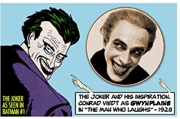 Я считаю вполне логичным предположение, что Джокер мог попасть под скальпель таких «врачей». Причины и следствия неизвестны, впрочем, как и прошлое самого персонажа. Единственно, что в одном из интервью с Бобом Кейном промелькнула фраза, давшая идею написания этой статьи ― «… Джокер обладает незабываемой внешностью, а на лице у него всегда широкая улыбка, будто маска Смеха».