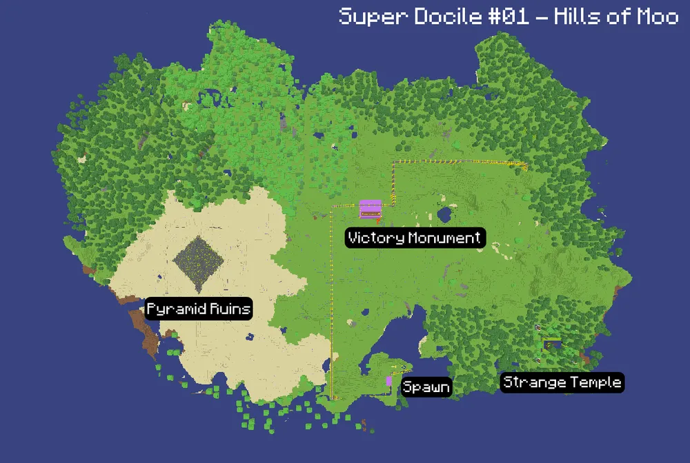 Главная цель карт – это найти и завершить Монумент Победы. Это структура со «слотами» для блоков (как правило шерсть) . Что бы пройти Super Hostile, вы должны поместить каждый из нужных блоков в соответствующий слот на Монументе. Это 16 различных блоков шерсти которые нужно найти, а также 3 блока из железа, золота и алмазов.