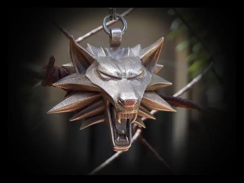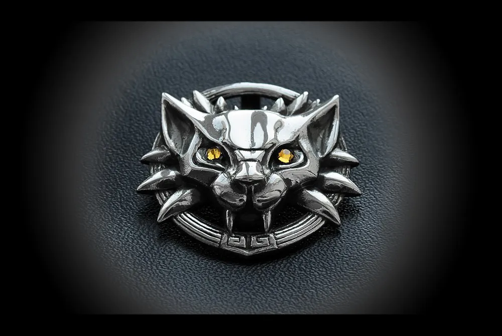 Ребята из нашей, российской мастерской "Ярило" вот уже несколько лет производят ведьмачьи медальоны - милые элегантные вещицы, которые нестыдно повесить на шею и носить в качестве ювелирных украшений. Производят они их из серебра, латуни и белой бронзы, причем ассортимент не ограничивается только медальоном школы Волка. Есть у них еще медальоны школы Кота и школы Змеи (Лето одобряет, я узнавала). Волк не идентичен, но близок к внутриигровому прототипу, а глаза из красных фианитиков лишь добавляют ощерившейся зверюге хищности и агрессивности.