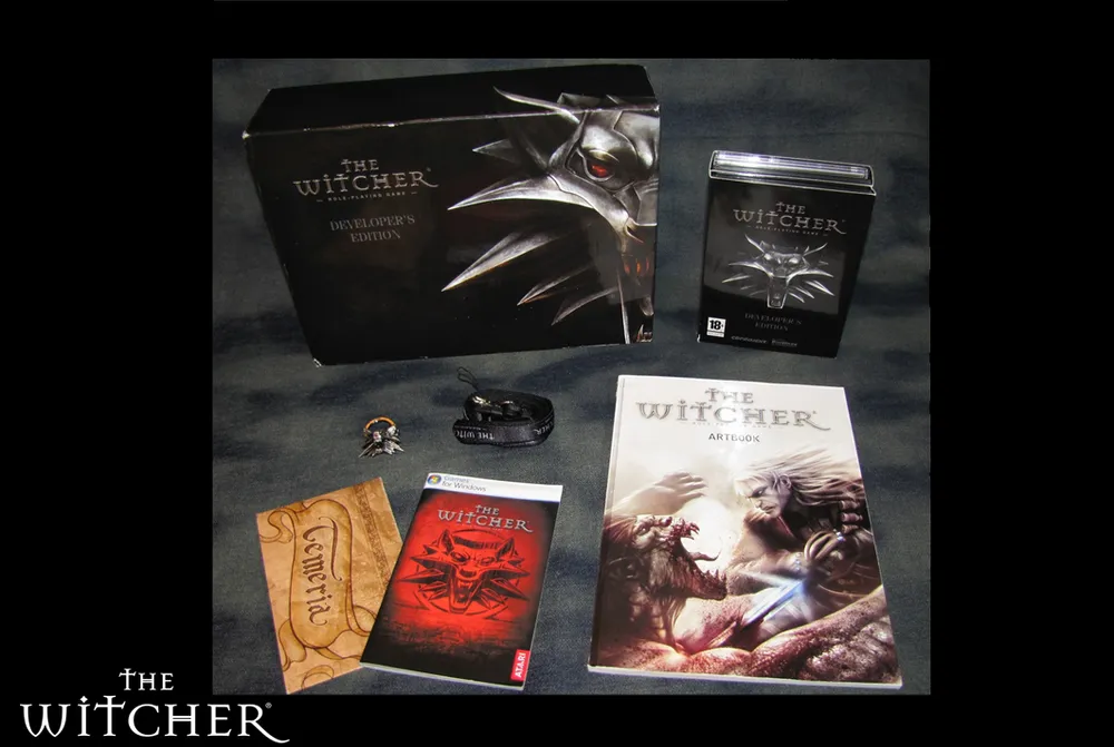 В 2008 г., когда на Ведьмака обрушился поток положительных отзывов, оценок и наград, а кривая рейтинга CD Projekt среди компаний-разработчиков уверенно поползла вверх, поляки выпустили еще одно издание своего детища, в состав которого вошел брелок-медальон, - The Witcher Developer’s Edition. Это был своеобразный пресс-кит, не предназначавшийся для продажи, а распространявшийся исключительно среди игровых издателей, разработчиков, локализаторов и, возможно, журналистов. Наполнение издания было примерно таким - см. фото ниже.