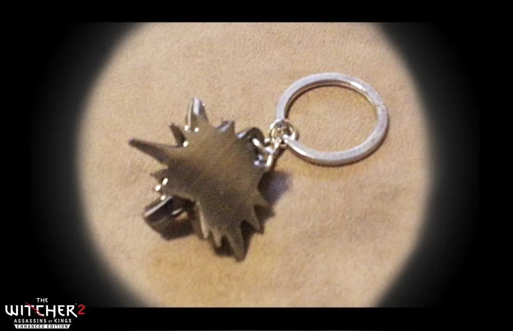 На самом деле я не совсем уверена, стоит ли вообще об этом недоразумении упоминать. Ну, разве что только для полноты изложения, ибо других причин точно нет. Насколько полякам повезло с брелком к первому Ведьмаку, настолько они пролетели с брелком ко второму. И хотя на нем изображена волчья морда, это даже близко на ведьмачий медальон не похоже. Все, больше сказать о нем нечего. Смотрим фото и радуемся, что нам, россиянам, на сей раз все же подфартило сочувствуем братьям-славянам.