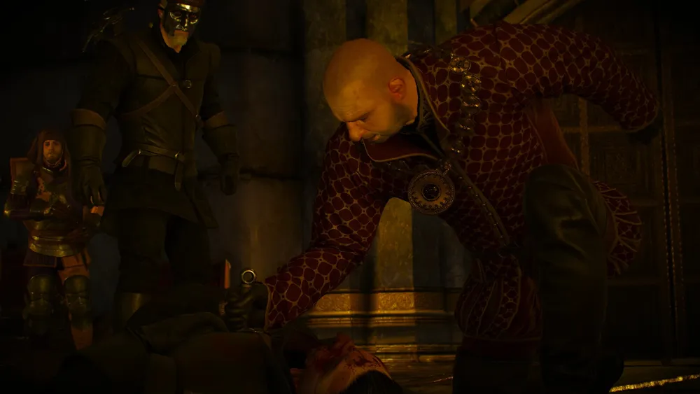 На этом разговор закончится, о’Дим направится к выходу и мимоходом возьмет и запросто лишит жизни несчастного забулдыгу лишь из-за того, что тот вмешался в разговор между ним и ведьмаком.
