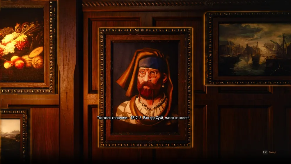 После обличительной речи о Вивальди как о ценителе искусства, Яромир поинтересуется у ведьмака его познаниями в живописи. После реплики «Кое-что понимаю» нам будет предложено определить, какая из представленных картин принадлежит кисти Эдварда Ван дер Хууя (уж простите великодушно, но слов из песни не выкинешь). Если перед разговором с Яромиром вы осмотрели картины, то правильно ответить на вопрос не составит труда.