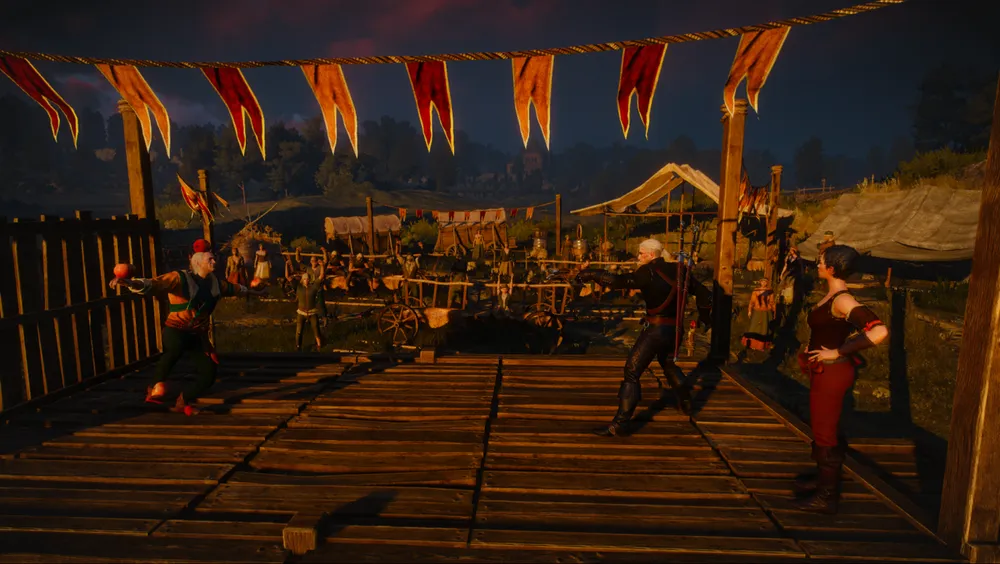 В лагере бродячих циркачей мы обнаружим Эвелину пререкающейся со своим коллегой. У них явно какие-то проблемы, что и подтвердится, после того, как ведьмак представится и в конспиративной форме изложит ей суть своего дела.