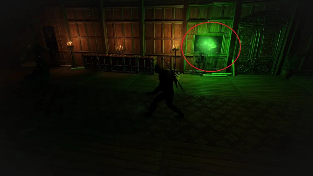 В самой усадьбе разгуляться не выйдет. Пройти мы сможем только в длинный коридор, на другом конце которого будет стоять зеркало. Но добраться ведьмак до него не сможет. Пол под его ногами обрушится и Геральт свалится во внутренний двор усадьбы. При падении ведьмак потеряет немалое количество здоровья, поэтому, прежде чем входить в коридор с зеркалом, убедитесь, что ваше здоровье на максимуме, иначе при падении есть риск разбиться насмерть.